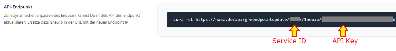 Die füür das Script benötigenten Daten finden Ihr wie folgt: Im Control Panel von noez.de wählen unter dem Menüpunkt "Services" Euren GRE Tunnel auswählen und dann scrollt Ihr zum dem Punkt "API Endpunkt" herunter. Dort findet Ihr die benötigten Daten innerhalb der URL: