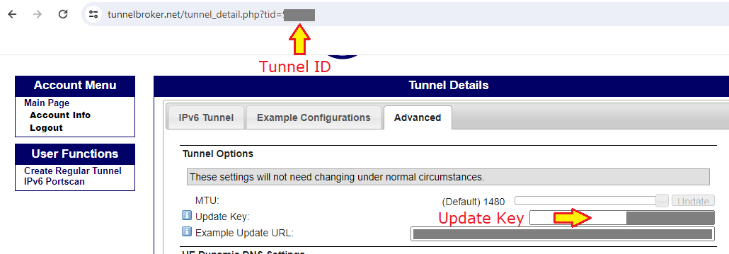 Im Control Panel von Tunnelbroker.net findet Ihr Eure API zugangsdaten wie folt: