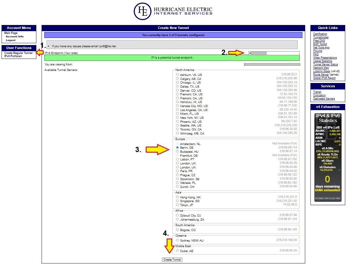 Jetzt erstellen wir uns einen IP Tunnel auf tunnelbroker.net.