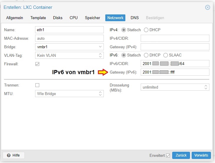 Die Verwendung der IPv6 in den VM's und LXC's: